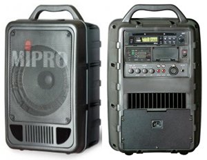 Sonorisation portable mobile rechargeable MA 705 MIPRO : Puissance 50 Watts / 8 Ohms / HP 20 cm large bande Réponse en fréquence: 50Hz-18kHz +/-3dB. 2 batteries 12V/2.7AH rechargeables et une alimentation secteur intégrée Autonomie jusqu’à 6 heures en continu Mixeur 1 entrée micro XLR ou Jack 6,35mm + 1 entrée ligne et + 1 sortie ligne Volume général et 1 correcteur en sortie Poignée fixe pour le transport, Possibilité de montage, sur pied Dim : 400 X 285 X 225 mm Poids : 10kg